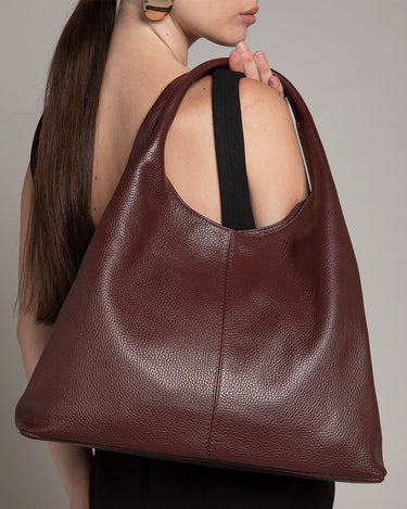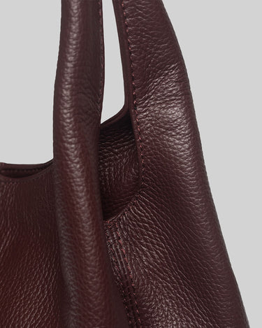 A leather shoulder bag that is perfect for everyday use. It features a zip closure, two interior zip pockets, and a slip pocket.