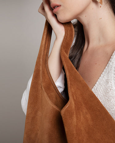 A slouchy suede tote bag. The perfect everyday bag for small and large items. Handmade in Florence, Italy by a family run atelier. Our Italian suede is exquisitely soft, with a velvety finish that speaks to quiet luxury. Natural markings are signatures of authenticity. Each hide carries its own character, with gentle variations in tone that make every piece uniquely yours.