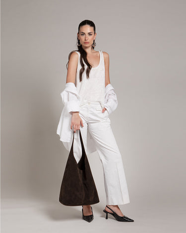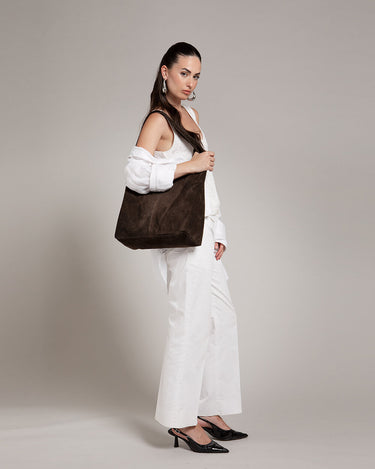 A slouchy suede tote bag. The perfect everyday bag for small and large items. Handmade in Florence, Italy by a family run atelier. Our Italian suede is exquisitely soft, with a velvety finish that speaks to quiet luxury. Natural markings are signatures of authenticity. Each hide carries its own character, with gentle variations in tone that make every piece uniquely yours.